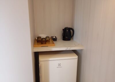 Każdy pokój posiada łazienkę z kabiną prysznicową, telewizor z płaskim ekranem, lodówkę, czajnik bezprzewodowy, komplet podstawowych naczyń (talerze, szklanki, sztućce), darmowe WiFi, koc plażowy, parawan i suszarkę do ubrań. Ponadto na terenie obiektu znajduje się w pełni wyposażona kuchnia. Do dyspozycji gości jest też żelazko, deska do prasowania i odkurzacz. Ręczniki na życzenie gości, po wcześniejszej informacji o takiej potrzebie (za opłatą).
